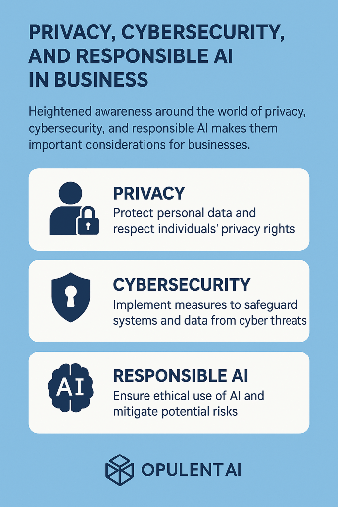 PDPA → รักษาข้อมูลลูกค้า Cybersecurity → ป้องกันภัยไซเบอร์ Responsible AI → ใช้เทคโนโลยีอย่างโปร่งใสและรับผิดชอบ